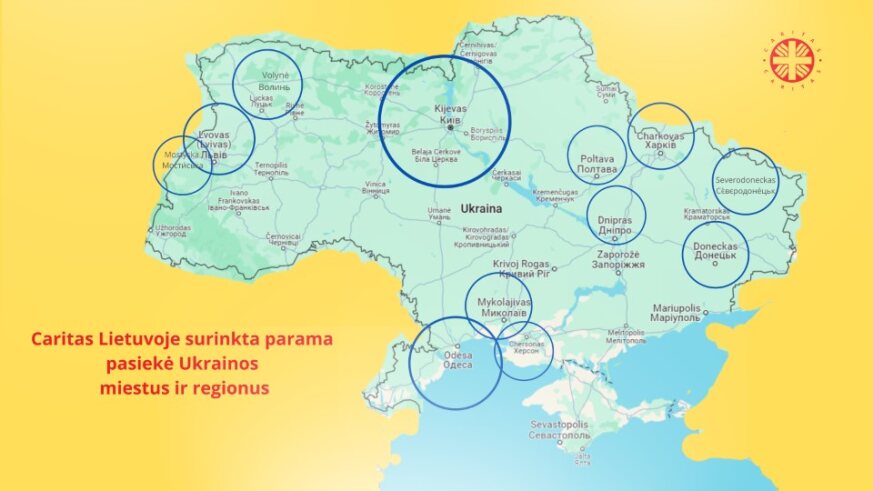 Nuo karo pradžios Ukrainoje Lietuvos Caritas organizavo 7 paramos rinkimo akcijas Ukrainoje likusiems civiliams ir vieną – bėgantiems nuo karo ir prieglobstį radusiems Moldovoje. Nuo karo pradžios į Ukrainą – išvežti 26 vilkikai humanitarinės paramos. Tiesiogiai bendradarbiaujant su Caritas Ukraine ir Caritas-Spes parama pasiekė Severodonecką, Lvivą, Mostyską, Odesą, Kijevą, Poltavą, Mykolajevą, Volynę, Dnieprą, ir kt. regionus. Per Lietuvos Caritą parama Ukrainoje likusiems žmonėms lėšomis ir humanitarinei pagalbai gabentais daiktais sudarė 2.267.031,09 Eur.