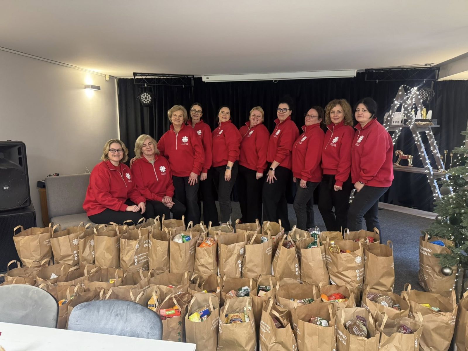 Tauragės karitiečiai - nacionalinės Carito iniciatyvos "Dosnumo krepšelis" dalyviai. Tauragės parapijos Carito nuotr.Tais pačiais metais Kaune įkuriamas dienos centras patiriantiems benamystę ir vienišumą ATEIK.